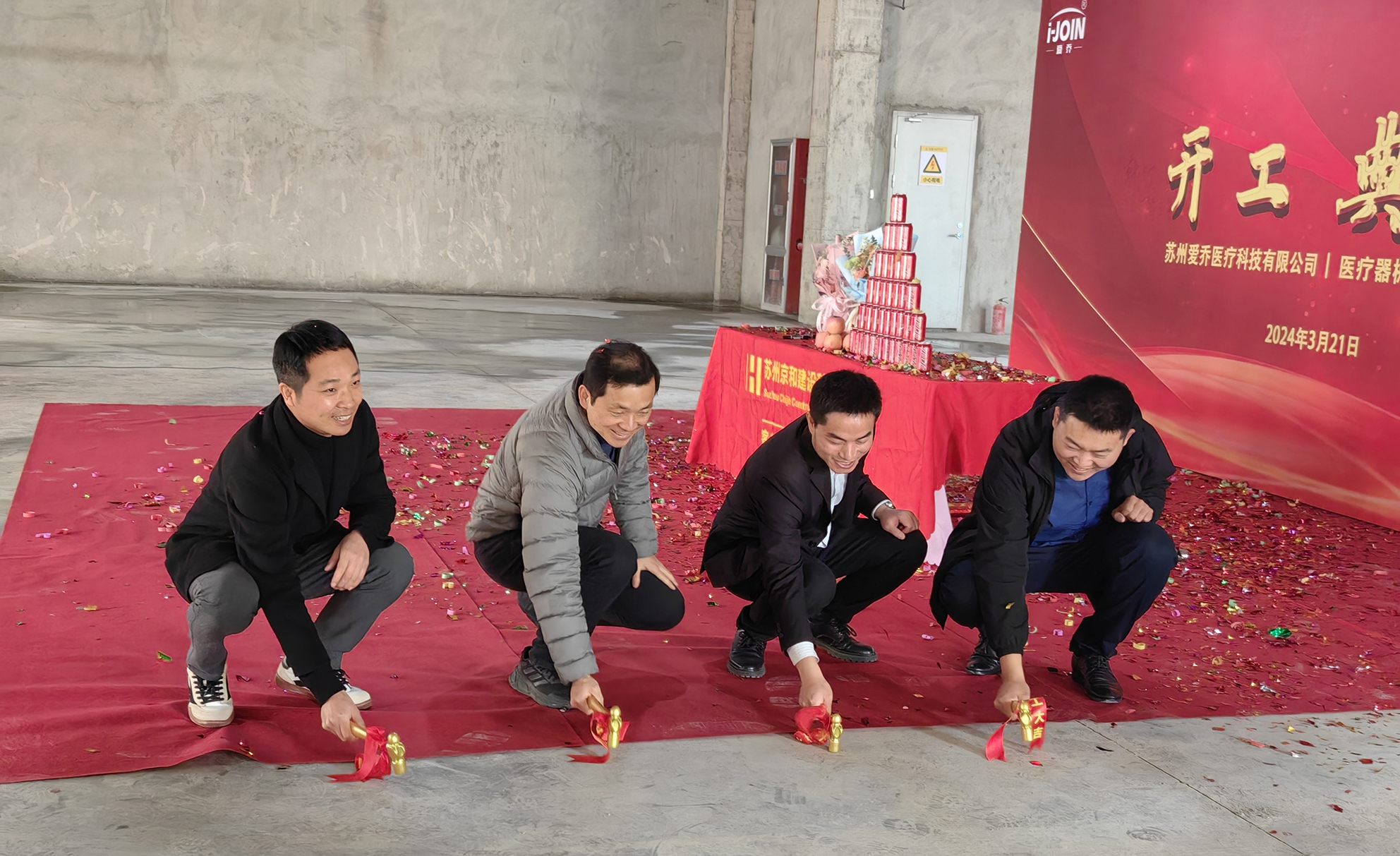 2024年3月21日上午11點18分,蘇州愛喬醫(yī)療科技有限公司醫(yī)療器械研發(fā)生產(chǎn)項目的工程開工典禮在蘇州市工業(yè)園區(qū)揚華路8號B5幢隆重舉行。項目裝修總面積為2804㎡。